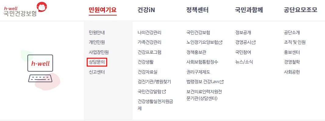 국민건강보험공단 ▶ 민원여기요 ▶ 상담문의 ▶ 상담문의 안내에 카카오 상담톡이 있는데요.